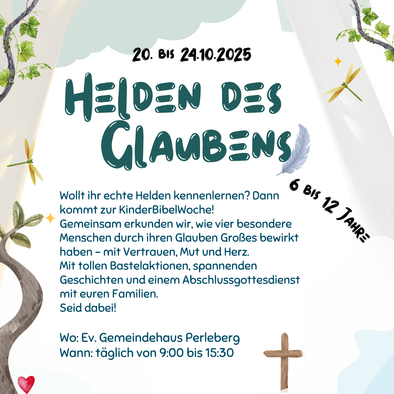 Herzliche Einladung für alle Kinder von 6 bis 12 Jahren zur Kinderbibelwoche in Perleberg in den Herbstferien.