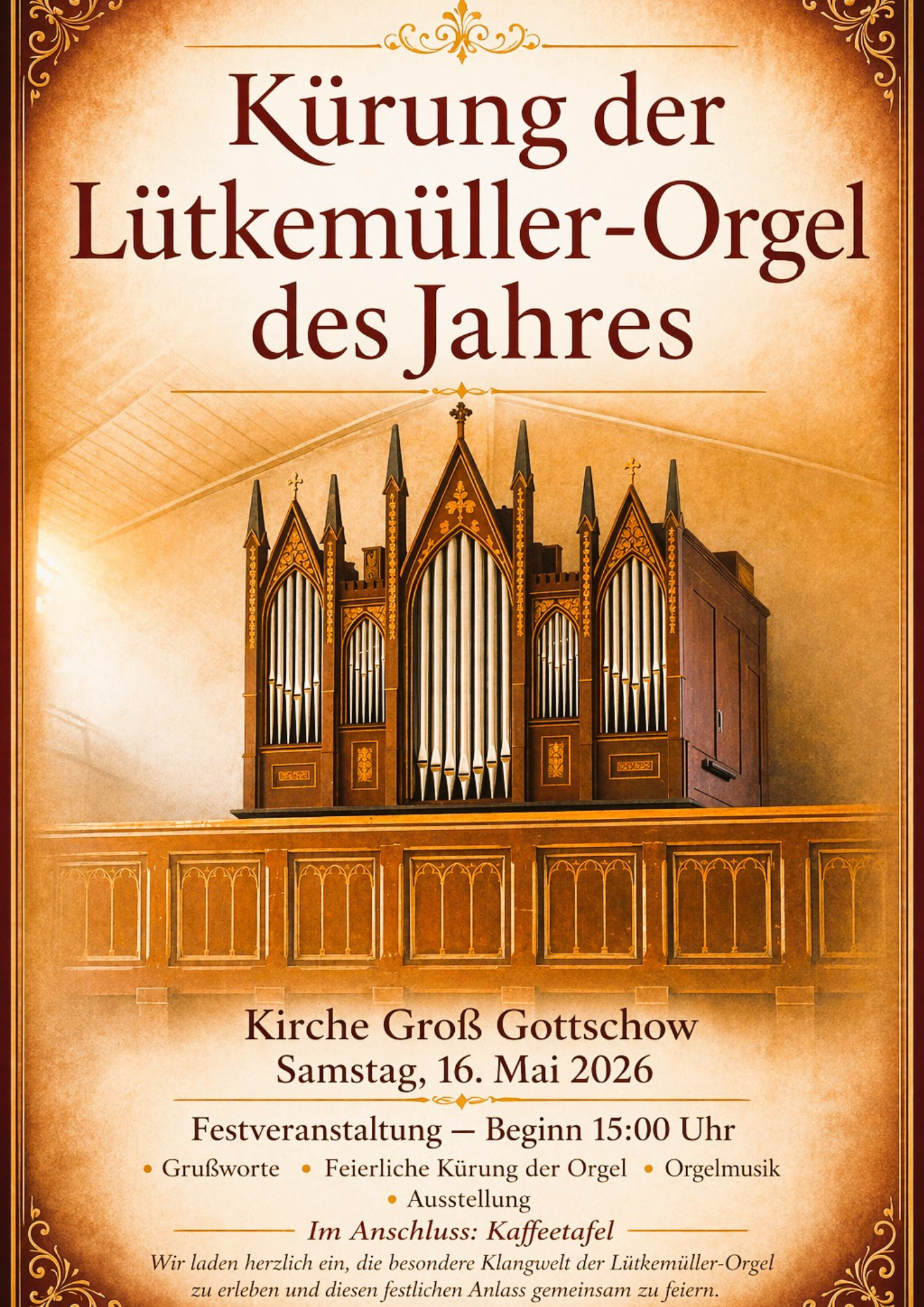 Veranstaltungen zum Jubiläumsjahr der Lütkemüller-Orgel in Groß Gottschow